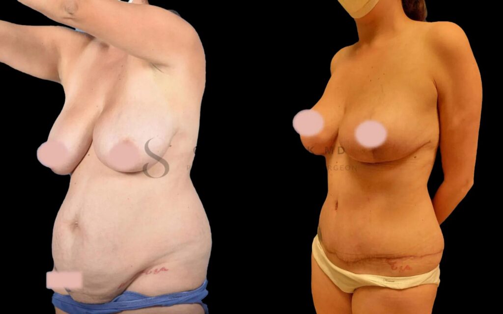- Patient with ruptured breast implants, exchanged for new silicone implants (Natrelle Inspira, 415 cc, Full profile) with plane change to dual plane position
